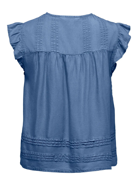 ONLLENNYO LS EMBROID V-NECK TOP NOOS WVN-BLUE